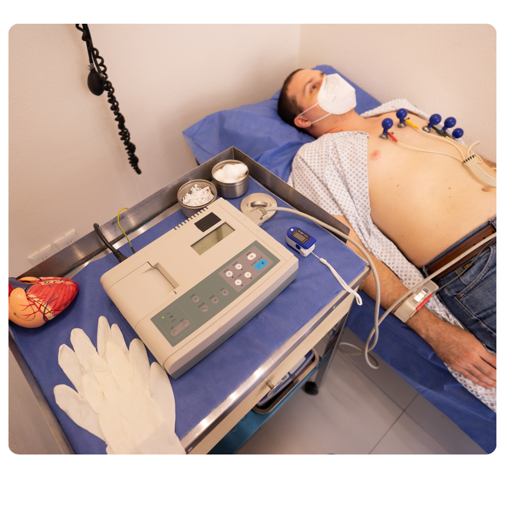 El electrocardiograma (ECG) es un examen fundamental y no invasivo que registra la actividad eléctrica de su corazón. Durante este rápido procedimiento, se colocan pequeños parches (electrodos) en el pecho, brazos y piernas para obtener una representación gráfica del ritmo y la frecuencia cardíaca. Es un primer paso esencial para detectar arritmias, identificar signos de un infarto o cualquier otra anomalía, brindando al Dr. Canseco un panorama claro de su salud cardiovascular. El examen es completamente indoloro y no requiere preparación especial, más que permanecer relajado para obtener resultados precisos.